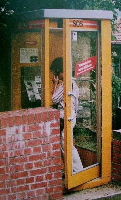 FeH 53 mit Einschwenktür, letzte Bauart mit Kunststoffdach, an einer engen Passage in Kronbert/Ts 1992. Eingebaut ist ein Bosch ÖKartTel.