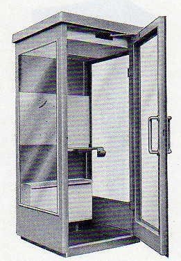 Das Fernsprechhäuschen ist aus Stahlblech in Verbindung mit 5-6 mm starkem Einscheiben-Sicherheitsglas, das Dach aus glasfaserverstärktem Polyesterharz gefertigt.