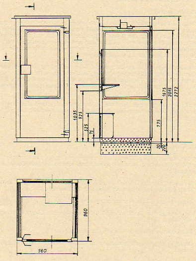 Das Fernsprechhäuschen 79 (siehe Bilder ) besteht aus Einzelteilen, die zusammengeschraubt werden. Die Seitenteile werden aus 2 Pfosten (Kastenprofil) mit zwischengesetzten Rahmen- und Sockelblechen gebildet. Rückwand, Schaltkasten, Dach, Unterdecke und Tür bestehen aus abgekantetem Stahlblech. In den Schaltkasten werden die Fernsprech- und Elektroinstal-lationsleitungen eingeführt. Im Raum zwischen Unterdecke und Dach sind die Beleuchtung und der Dämmerungsschalter angeordnet. Die Beleuchtung besteht aus 2 Langzeitglühlampen von je 40 Watt. Die Verglasung des Fernsprechhäuschens 79 erfolgt mit Sicherheitsglas in Gummiprofilen. Der Einsatz von Dickglas ist möglich. Die Tür hat ein Rollenfallen-Einsteck-schloß, Leichtnietallmuschelgriffe und einen mechanischen Türschließer.