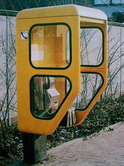 Das Design der Fernsprechhaube FeHb 82 ermöglicht eine Kombination mit dem Fernsprechhäuschen FeH 78.