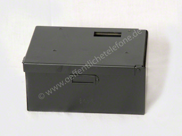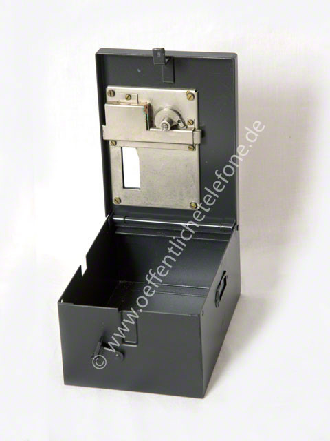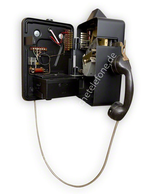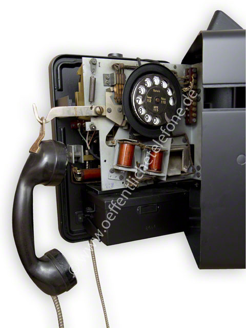 Der Münzfernsprecher besteht aus einem mattschwarz lackierten Gehäuse mit Geldeinwurfschlitz für 10 Reichspfennig-Stücke, dem Sperrnummernschalter, Handapparat, der Kassiervorrichtung und dem Geldbehälter.