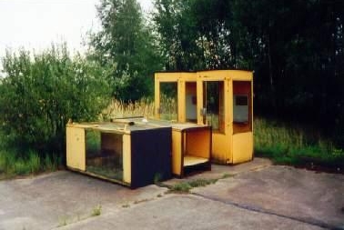 vier abgestellte (abgelegte) FeH 79 am mitteldeutschen Grenzübergang Marienborn bei Helmsted