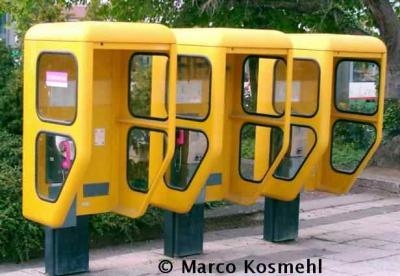 Das Design der Fernsprechhaube FeHb 82 ermöglicht eine Kombination mit dem Fernsprechhäuschen FeH 78.